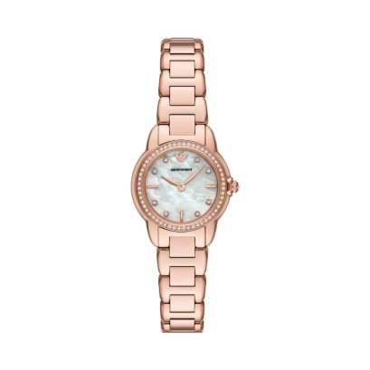 • Brand: Emporio Armani • SKU: AR11671 • Case Size: 26mm • Case Material: Rose Gold-Tone Stainless Steel • Dial Color: Mother of Pearl, • Movement: Quartz Two-Hand • Display: Two-Hand Analog • Crystal: Mineral Crystal • Bracelet Material: Rose Gold-Tone Stainless Steel • Bracelet Width: 12mm • Water Resistance: 50m (5 ATM) • Clasp Type: Bracelet Butterfly Deployant สินค้าของแท้ 100% พร้อมกล่อง นำเข้าและจัดจำหน่ายโดย บริษัท ทีดีซี คอร์ปอเรชั่น จำกัด ** ข้อควรระวัง โดยทั่วไปแล้ว ทนทานต่อการกระเด็นหรือแช่ในน้ำในระยะสั้นๆ แต่ไม่เหมาะสำหรับการใส่ว่ายน้ำหรือใส่อาบน้ำ ** เงื่อนไขการรับประกัน : รับประกันโดย บริษัท ทีดีซี คอร์ปอเรชั่น จำกัด - ส่วนลด 0-50% รับประเครื่องและถ่าน 1 ปี - ส่วนลด 51% ขึ้นไป รับประเครื่องและถ่าน 6 เดือน ** สั่งสินค้าในวัน จันทร์ - พฤหัส ส่งสินค้าวันถัดไป ** สั่งสินค้าในวันศุกร์ ส่งสินค้าวันจันทร์ ** สั่งสินค้า เสาร์-อาทิตย์ ส่งสินค้าวันอังคาร ** ลูกค้าจะได้รับสินค้าหลังจากที่ร้านจัดส่ง 2-5 วันทำการ