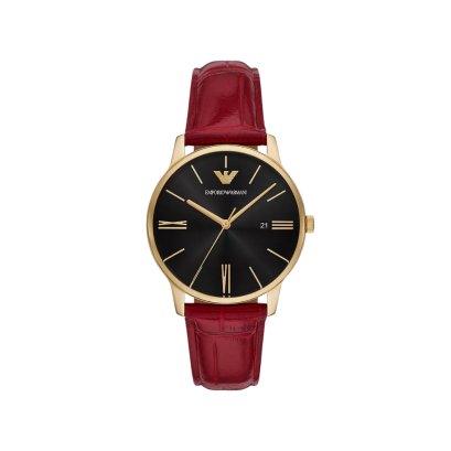 Sku: AR11673 Case Size: 39MM Movement: Quartz Three-Hand Date Strap Material: Leather Strap Color: Red Case Water Resistance: 5 ATM Case Material: Stainless Steel Case Color: Gold Dial Color: Black Strap Width: 20MM Closure: Single Prong Strap Buckle Crystal Type: Mineral สินค้าของแท้ 100% พร้อมกล่อง นำเข้าและจัดจำหน่ายโดย บริษัท ทีดีซี คอร์ปอเรชั่น จำกัด ** ข้อควรระวัง โดยทั่วไปแล้ว ทนทานต่อการกระเด็นหรือแช่ในน้ำในระยะสั้นๆ แต่ไม่เหมาะสำหรับการใส่ว่ายน้ำหรือใส่อาบน้ำ ** เงื่อนไขการรับประกัน : รับประกันโดย บริษัท ทีดีซี คอร์ปอเรชั่น จำกัด - ส่วนลด 0-50% รับประเครื่องและถ่าน 1 ปี - ส่วนลด 51% ขึ้นไป รับประเครื่องและถ่าน 6 เดือน ** สั่งสินค้าในวัน จันทร์ - พฤหัส ส่งสินค้าวันถัดไป ** สั่งสินค้าในวันศุกร์ ส่งสินค้าวันจันทร์ ** สั่งสินค้า เสาร์-อาทิตย์ ส่งสินค้าวันอังคาร ** ลูกค้าจะได้รับสินค้าหลังจากที่ร้านจัดส่ง 2-5 วันทำการ