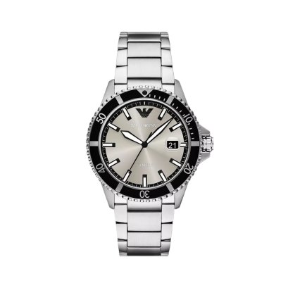 SKU AR11676 Gender Gents Water Resistancy 50 metres Movement Quartz/Chrono Case material Stainless steel Case shape Round Case Width 42 mm Dial color Blue, White Crystal Mineral Strap Material Stainless Steel Strap Color Silver สินค้าของแท้ 100% พร้อมกล่อง นำเข้าและจัดจำหน่ายโดย บริษัท ทีดีซี คอร์ปอเรชั่น จำกัด ** ข้อควรระวัง โดยทั่วไปแล้ว ทนทานต่อการกระเด็นหรือแช่ในน้ำในระยะสั้นๆ แต่ไม่เหมาะสำหรับการใส่ว่ายน้ำหรือใส่อาบน้ำ ** เงื่อนไขการรับประกัน : รับประกันโดย บริษัท ทีดีซี คอร์ปอเรชั่น จำกัด - ส่วนลด 0-50% รับประเครื่องและถ่าน 1 ปี - ส่วนลด 51% ขึ้นไป รับประเครื่องและถ่าน 6 เดือน ** สั่งสินค้าในวัน จันทร์ - พฤหัส ส่งสินค้าวันถัดไป ** สั่งสินค้าในวันศุกร์ ส่งสินค้าวันจันทร์ ** สั่งสินค้า เสาร์-อาทิตย์ ส่งสินค้าวันอังคาร ** ลูกค้าจะได้รับสินค้าหลังจากที่ร้านจัดส่ง 2-5 วันทำการ