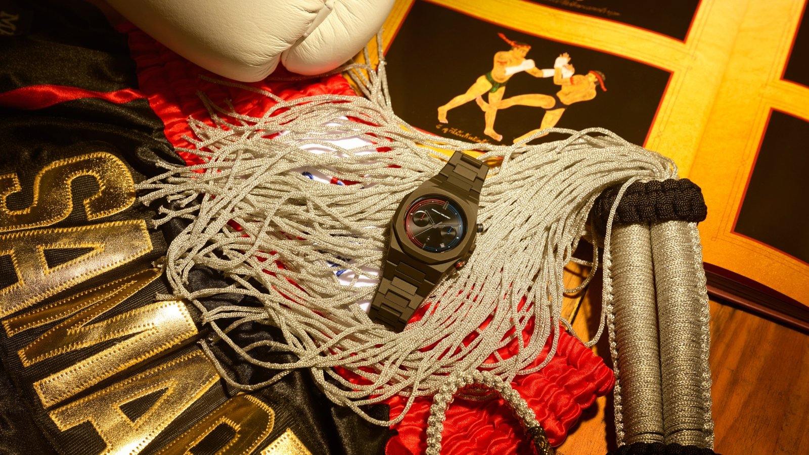 The watch, modelled onour Polychrono design, isa balance of matte blackcasing and vivid accents.Presented proudly inlimited edition packaging.A truly worthycollectable.