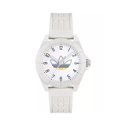 Model AOST24570 Manufacturer adidas Originals Gender Unisex Water Resistancy 50 metres Movement Quartz Case material Synthetic Case shape Round Case Width 41.00 mm Case Thickness 10.00 mm Dial color White Crystal Acrylic Strap Material Plastic Strap Color White Strap Width 20.00 mm สินค้าของแท้ 100% พร้อมกล่อง นำเข้าและจัดจำหน่ายโดย บริษัท ทีดีซี คอร์ปอเรชั่น จำกัด ** ข้อควรระวัง โดยทั่วไปแล้ว ทนทานต่อการกระเด็นหรือแช่ในน้ำในระยะสั้นๆ แต่ไม่เหมาะสำหรับการใส่ว่ายน้ำหรือใส่อาบน้ำ ** เงื่อนไขการรับประกัน : รับประกันโดย บริษัท ทีดีซี คอร์ปอเรชั่น จำกัด - ส่วนลด 0-50% รับประเครื่องและถ่าน 1 ปี - ส่วนลด 51% ขึ้นไป รับประเครื่องและถ่าน 6 เดือน ** สั่งสินค้าในวัน จันทร์ - พฤหัส ส่งสินค้าวันถัดไป ** สั่งสินค้าในวันศุกร์ ส่งสินค้าวันจันทร์ ** สั่งสินค้า เสาร์-อาทิตย์ ส่งสินค้าวันอังคาร ** ลูกค้าจะได้รับสินค้าหลังจากที่ร้านจัดส่ง 2-5 วันทำการ