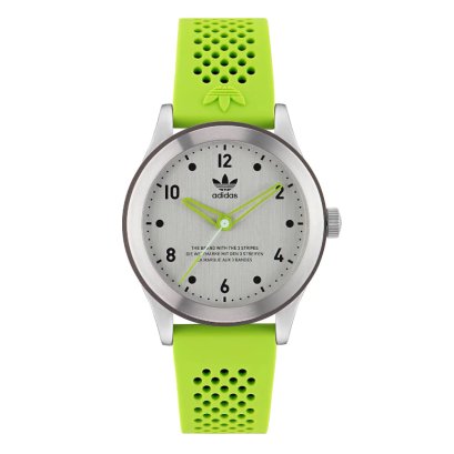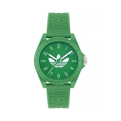 Model AOST24572 Marka adidas Originals Gender Unisex Water Resistancy 50 metres Movement Quartz Case material Synthetic Case shape Round Case Width 41.00 mm Case Thickness 10.00 mm Dial color Green Crystal Acrylic Strap Material Plastic Strap Color Green Strap Width 20.00 mm สินค้าของแท้ 100% พร้อมกล่อง นำเข้าและจัดจำหน่ายโดย บริษัท ทีดีซี คอร์ปอเรชั่น จำกัด ** ข้อควรระวัง โดยทั่วไปแล้ว ทนทานต่อการกระเด็นหรือแช่ในน้ำในระยะสั้นๆ แต่ไม่เหมาะสำหรับการใส่ว่ายน้ำหรือใส่อาบน้ำ ** เงื่อนไขการรับประกัน : รับประกันโดย บริษัท ทีดีซี คอร์ปอเรชั่น จำกัด - ส่วนลด 0-50% รับประเครื่องและถ่าน 1 ปี - ส่วนลด 51% ขึ้นไป รับประเครื่องและถ่าน 6 เดือน ** สั่งสินค้าในวัน จันทร์ - พฤหัส ส่งสินค้าวันถัดไป ** สั่งสินค้าในวันศุกร์ ส่งสินค้าวันจันทร์ ** สั่งสินค้า เสาร์-อาทิตย์ ส่งสินค้าวันอังคาร ** ลูกค้าจะได้รับสินค้าหลังจากที่ร้านจัดส่ง 2-5 วันทำการ