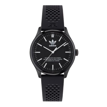 Model AOST24547 Manufacturer adidas Originals Gender Unisex Water Resistancy 50 metres Movement Quartz Case material Synthetic Case shape Round Case Width 42.00 mm Case Thickness 11.00 mm Dial color Black Crystal Mineral Strap Material Rubber Strap Color Black Strap Width 22.00 mm สินค้าของแท้ 100% พร้อมกล่อง นำเข้าและจัดจำหน่ายโดย บริษัท ทีดีซี คอร์ปอเรชั่น จำกัด ** ข้อควรระวัง โดยทั่วไปแล้ว ทนทานต่อการกระเด็นหรือแช่ในน้ำในระยะสั้นๆ แต่ไม่เหมาะสำหรับการใส่ว่ายน้ำหรือใส่อาบน้ำ ** เงื่อนไขการรับประกัน : รับประกันโดย บริษัท ทีดีซี คอร์ปอเรชั่น จำกัด - ส่วนลด 0-50% รับประเครื่องและถ่าน 1 ปี - ส่วนลด 51% ขึ้นไป รับประเครื่องและถ่าน 6 เดือน ** สั่งสินค้าในวัน จันทร์ - พฤหัส ส่งสินค้าวันถัดไป ** สั่งสินค้าในวันศุกร์ ส่งสินค้าวันจันทร์ ** สั่งสินค้า เสาร์-อาทิตย์ ส่งสินค้าวันอังคาร ** ลูกค้าจะได้รับสินค้าหลังจากที่ร้านจัดส่ง 2-5 วันทำการ