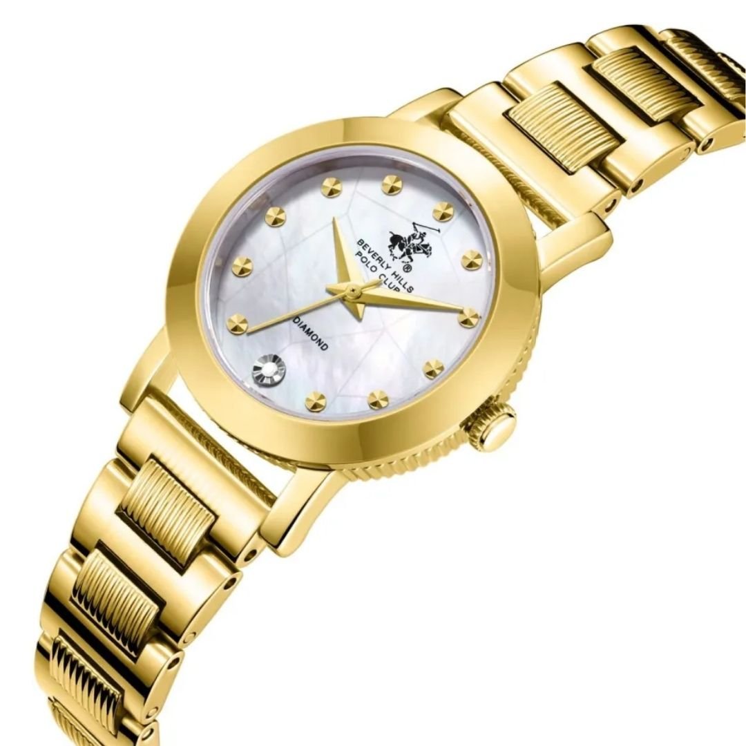 Beverly Hills Polo Club BP3842X.120 • หน้าปัด: สีขาวมุก (Mother of Pearl) • ตัวเรือนทรงกลม สีทอง (Gold) • ขนาดหน้าปัด: 28 มม. • ตัวเรือน : Stainless Steel • ตัวสาย : Stainless Steel • กลไก: ระบบ ควอตซ์ (Quartz) • กระจก: Mineral Glass เคลือบแซฟไฟร์ (Ceramic Sapphire Coated) • การกันน้ำ: ระดับ 5 ATM (50 เมตร) สามารถทนต่อละอองฝน หรือการล้างมือได้ สินค้าของแท้ 100% พร้อมกล่อง นำเข้าและจัดจำหน่ายโดย บริษัท ทีดีซี คอร์ปอเรชั่น จำกัด ** ข้อควรระวัง โดยทั่วไปแล้ว ทนทานต่อการกระเด็นหรือแช่ในน้ำในระยะสั้นๆ แต่ไม่เหมาะสำหรับการใส่ว่ายน้ำหรือใส่อาบน้ำ ** เงื่อนไขการรับประกัน : รับประกันโดย บริษัท ทีดีซี คอร์ปอเรชั่น จำกัด - ส่วนลด 0-50% รับประเครื่องและถ่าน 1 ปี - ส่วนลด 51% ขึ้นไป รับประเครื่องและถ่าน 6 เดือน ** สั่งสินค้าในวัน จันทร์ - พฤหัส ส่งสินค้าวันถัดไป ** ลูกค้าจะได้รับสินค้าหลังจากที่ร้านจัดส่ง 2-5 วันทำการ