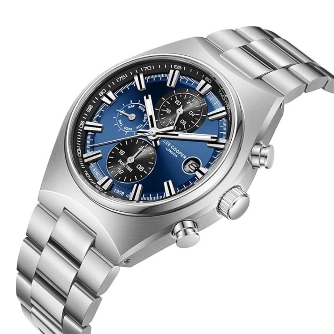 Lee Cooper LC08214.390 นาฬิกาข้อมือผู้ชาย รายละเอียดตัวเครื่องและดีไซน์ • ดีไซน์หน้าปัด: หน้าปัดทรงกลม สีน้ำเงิน (Blue Dial) พร้อมวงหน้าปัดย่อยสำหรับฟังก์ชันจับเวลา • วัสดุตัวเรือน: ทำจาก Super Metal สีเงิน (Silver) แข็งแรงทนทานและให้ความเงางาม • ขนาดตัวเรือน: เส้นผ่านศูนย์กลางหน้าปัด 42 มิลลิเมตร เป็นขนาดมาตรฐานสำหรับผู้ชาย • สายนาฬิกา: สายโลหะสแตนเลสสตีล (Stainless Steel) สีเงิน พร้อมตัวล็อกแบบบานพับ • ระบบการทำงาน: กลไกควอตซ์ (Quartz Movement) พร้อมฟังก์ชัน โครโนกราฟ (Chronograph) สำหรับจับเวลา และมีช่องแสดงวันที่ • กระจก: กระจกมิเนอรัล (Mineral Glass) ป้องกันรอยขีดข่วน • การกันน้ำ: ระดับ 5 ATM (หรือ 50 เมตร) ทนทานต่อการล้างมือ ฝนตก หรือการโดนน้ำกระเซ็นได้ สินค้าของแท้ 100% พร้อมกล่อง นำเข้าและจัดจำหน่ายโดย บริษัท ทีดีซี คอร์ปอเรชั่น จำกัด ** ข้อควรระวัง โดยทั่วไปแล้ว ทนทานต่อการกระเด็นหรือแช่ในน้ำในระยะสั้นๆ แต่ไม่เหมาะสำหรับการใส่ว่ายน้ำหรือใส่อาบน้ำ ** เงื่อนไขการรับประกัน : รับประกันโดย บริษัท ทีดีซี คอร์ปอเรชั่น จำกัด - ส่วนลด 0-50% รับประเครื่องและถ่าน 1 ปี - ส่วนลด 51% ขึ้นไป รับประเครื่องและถ่าน 6 เดือน ** สั่งสินค้าในวัน จันทร์ - พฤหัส ส่งสินค้าวันถัดไป ** สั่งสินค้าในวันศุกร์ ส่งสินค้าวันจันทร์ ** สั่งสินค้า เสาร์-อาทิตย์ ส่งสินค้าวันอังคาร ** ลูกค้าจะได้รับสินค้าหลังจากที่ร้านจัดส่ง 2-5 วันทำการ