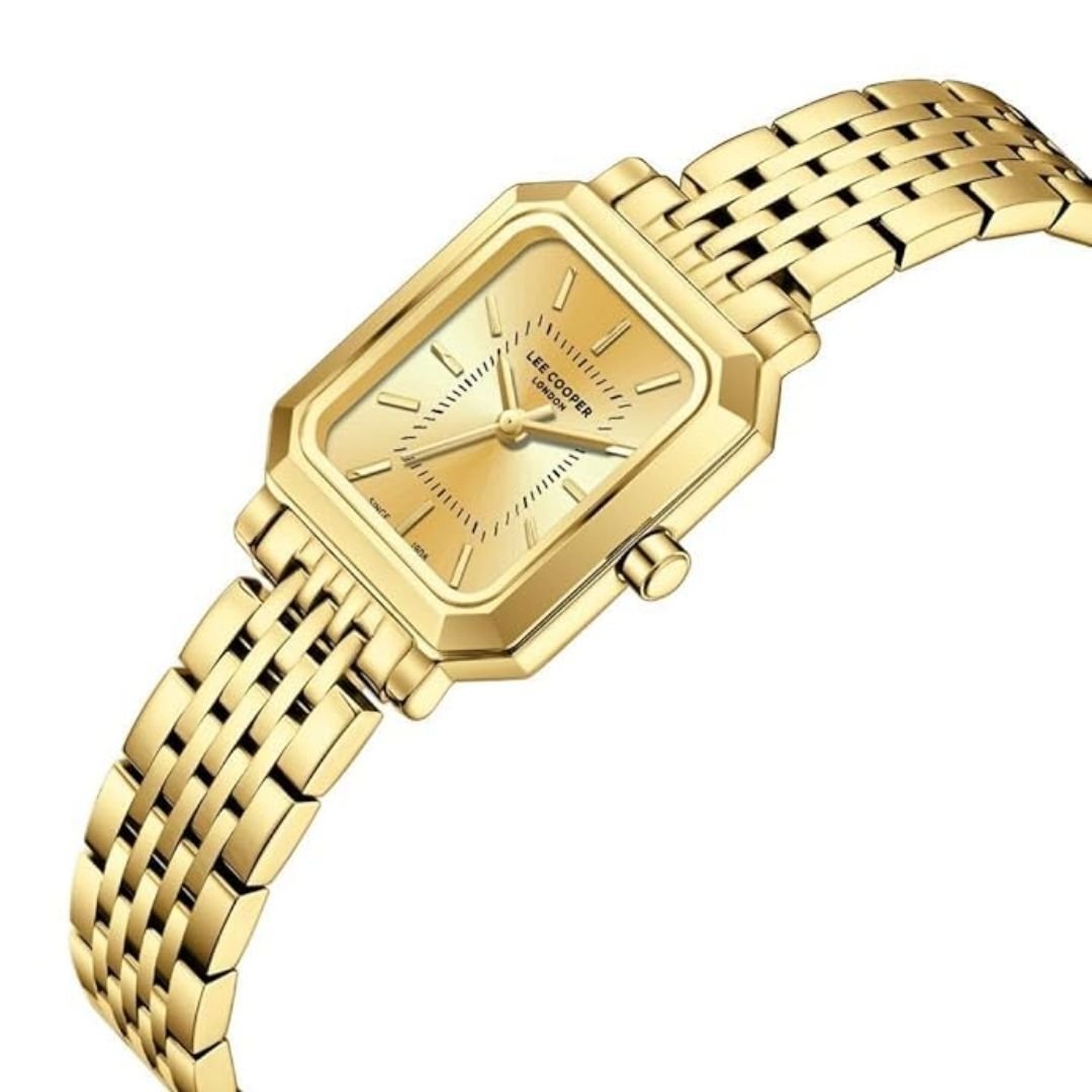 Lee Cooper LC08203.110 นาฬิกาข้อมือผู้หญิง รายละเอียดตัวเครื่องและดีไซน์ • ดีไซน์หน้าปัด: หน้าปัดทรงสี่เหลี่ยมผืนผ้า (Rectangular Shape) สีทอง (Gold Dial) เรียบง่ายในสไตล์คลาสสิก • วัสดุตัวเรือน: ทำจาก Super Metal หรือสแตนเลสสตีลสีทอง • ขนาดตัวเรือน: มีขนาดหน้าปัดประมาณ 22 มิลลิเมตร • สายนาฬิกา: สายโลหะ (Metal Bracelet) สีทอง พร้อมตัวล็อกแบบบานพับ • ระบบการทำงาน: กลไกควอตซ์ (Quartz Movement) ที่มีความแม่นยำสูง • กระจก: กระจกมิเนอรัล (Mineral Glass) • การกันน้ำ: ระดับ 3 ATM (หรือ 30 เมตร) สามารถทนต่อการล้างมือ ฝนตก หรือการโดนน้ำกระเซ็นได้ สินค้าของแท้ 100% พร้อมกล่อง นำเข้าและจัดจำหน่ายโดย บริษัท ทีดีซี คอร์ปอเรชั่น จำกัด ** ข้อควรระวัง โดยทั่วไปแล้ว ทนทานต่อการกระเด็นหรือแช่ในน้ำในระยะสั้นๆ แต่ไม่เหมาะสำหรับการใส่ว่ายน้ำหรือใส่อาบน้ำ ** เงื่อนไขการรับประกัน : รับประกันโดย บริษัท ทีดีซี คอร์ปอเรชั่น จำกัด - ส่วนลด 0-50% รับประเครื่องและถ่าน 1 ปี - ส่วนลด 51% ขึ้นไป รับประเครื่องและถ่าน 6 เดือน ** สั่งสินค้าในวัน จันทร์ - พฤหัส ส่งสินค้าวันถัดไป ** สั่งสินค้าในวันศุกร์ ส่งสินค้าวันจันทร์ ** สั่งสินค้า เสาร์-อาทิตย์ ส่งสินค้าวันอังคาร ** ลูกค้าจะได้รับสินค้าหลังจากที่ร้านจัดส่ง 2-5 วันทำการ