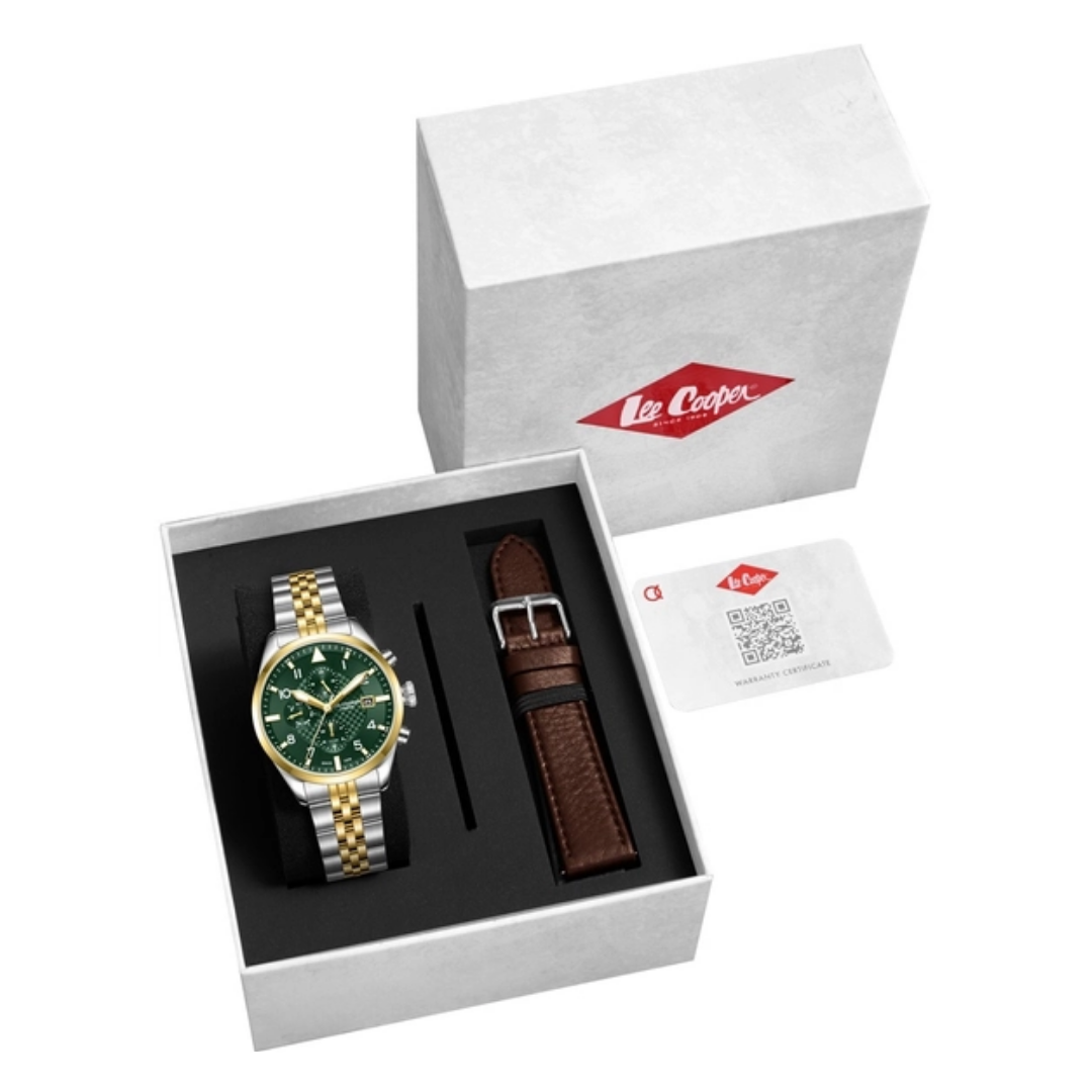LEE COOPER LC08318.270 MALE 41 MM. นาฬิกาข้อมือ นาฬิกาสำหรับผู้ชาย • ฟังก์ชั่นการทำงาน : MULTIFUNCTION • ขนาด : 41 • รูปทรง : ROUND • วัสดุตัวเรือน : SUPER METAL • สีตัวเรือน : SILVER/GOLD • วัสดุสาย : METAL • สีสาย : SILVER/GOLD • สีหน้าปัด : DARK GREEN • กระจก : MINERAL • กันน้ำ : 5 ATM • ความกว้างสาย : 20X18 สินค้าของแท้ 100% พร้อมกล่อง นำเข้าและจัดจำหน่ายโดย บริษัท ทีดีซี คอร์ปอเรชั่น จำกัด ** ข้อควรระวัง โดยทั่วไปแล้ว ทนทานต่อการกระเด็นหรือแช่ในน้ำในระยะสั้นๆ แต่ไม่เหมาะสำหรับการใส่ว่ายน้ำหรือใส่อาบน้ำ ** เงื่อนไขการรับประกัน : รับประกันโดย บริษัท ทีดีซี คอร์ปอเรชั่น จำกัด - ส่วนลด 0-50% รับประเครื่องและถ่าน 1 ปี - ส่วนลด 51% ขึ้นไป รับประเครื่องและถ่าน 6 เดือน ** สั่งสินค้าในวัน จันทร์ - พฤหัส ส่งสินค้าวันถัดไป ** สั่งสินค้าในวันศุกร์ ส่งสินค้าวันจันทร์ ** สั่งสินค้า เสาร์-อาทิตย์ ส่งสินค้าวันอังคาร ** ลูกค้าจะได้รับสินค้าหลังจากที่ร้านจัดส่ง 2-5 วันทำการ