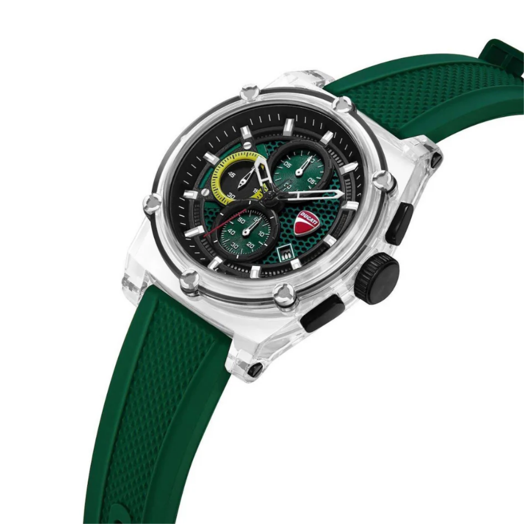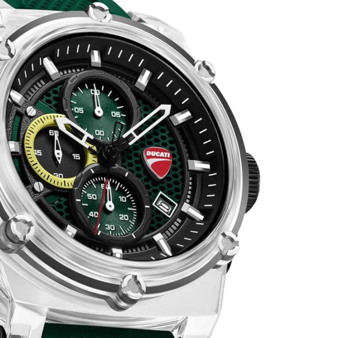 Ducati DTWGO0001603 นาฬิกาข้อมือผู้ชาย • ระบบการทำงาน (MOVT FUNCTION): ควอตซ์ โครโนกราฟ (QUARTZ CHRONOGRAPH), • ขนาดตัวเรือน (CASE SIZE): 43.8 มม. • ตัวเรือน (CASE): แบบโปร่งใส (TRANSPARENT), ตกแต่งแบบเงา • ขอบหน้าปัด (TOPRING): สเตนเลสเคลือบสีดำ (IPB) • เม็ดมะยมและปุ่มกด (CROWN & PUSHERS): สเตนเลสเคลือบสีดำ (IPB) • กระจก (MINERAL GLASS): กระจกมิเนอรัลแบบเรียบ (FLAT) • หน้าปัด (DIAL): สีเขียว • ขนาดสาย (BRACELET/STRAP SIZE): 22 x 20 มม. • สายและตัวล็อก (BRACELET/STRAP & BUCKLE): สายซิลิโคนสีเขียว, ตัวล็อกสีดำ (IPB) • การกันน้ำ (WR): 5 ATM (กันน้ำลึก 50 เมตร) สินค้าของแท้ 100% พร้อมกล่อง นำเข้าและจัดจำหน่ายโดย บริษัท ทีดีซี คอร์ปอเรชั่น จำกัด ** ข้อควรระวัง โดยทั่วไปแล้ว ทนทานต่อการกระเด็นหรือแช่ในน้ำในระยะสั้นๆ แต่ไม่เหมาะสำหรับการใส่ว่ายน้ำหรือใส่อาบน้ำ ** เงื่อนไขการรับประกัน : รับประกันโดย บริษัท ทีดีซี คอร์ปอเรชั่น จำกัด - ส่วนลด 0-50% รับประเครื่องและถ่าน 1 ปี - ส่วนลด 51% ขึ้นไป รับประเครื่องและถ่าน 6 เดือน ** สั่งสินค้าในวัน จันทร์ - พฤหัส ส่งสินค้าวันถัดไป ** สั่งสินค้าในวันศุกร์ ส่งสินค้าวันจันทร์ ** สั่งสินค้า เสาร์-อาทิตย์ ส่งสินค้าวันอังคาร ** ลูกค้าจะได้รับสินค้าหลังจากที่ร้านจัดส่ง 2-5 วันทำการ