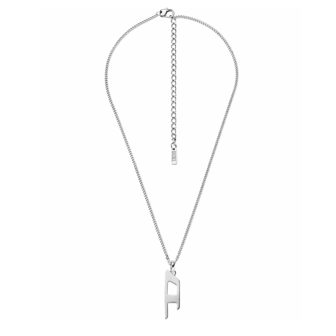 สร้อยคอจี้โทนสีเงินของ Diesel โดดเด่นด้วยสแตนเลสและจี้โลโก้ D