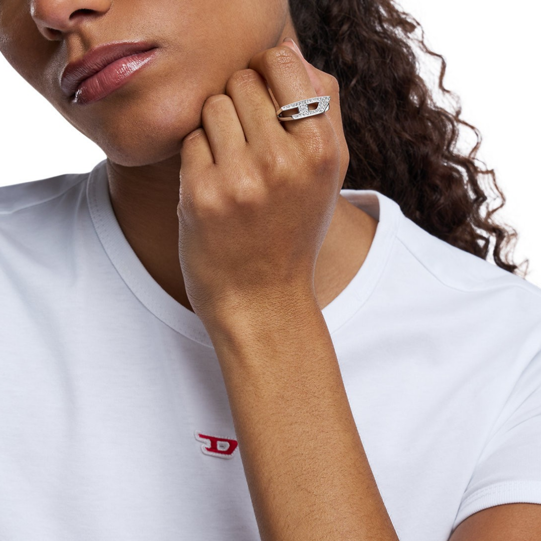 แหวนตราประทับสแตนเลสหรือคริสตัลแวววาวแบบ Unisex ที่มีโลโก้ Diesel D