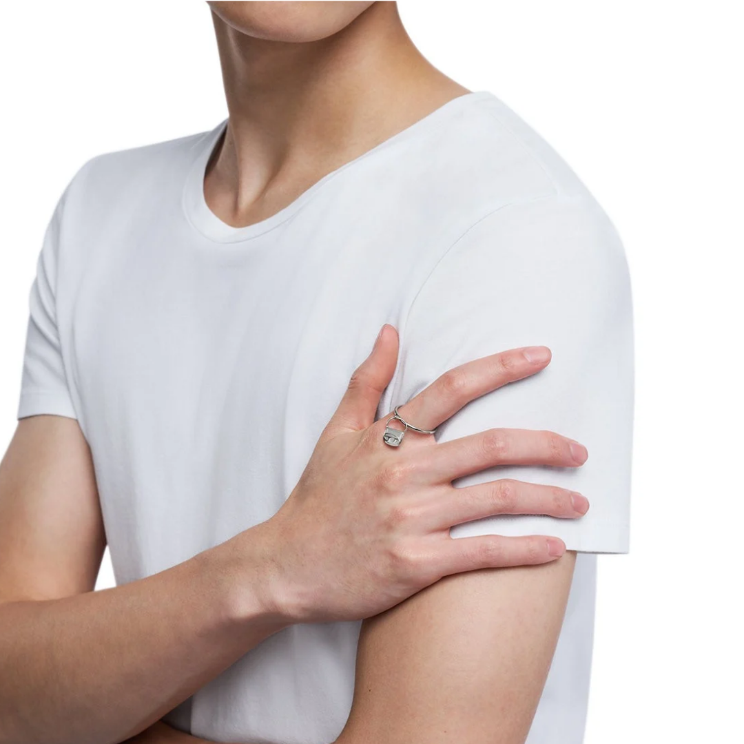 แหวนเงินประดับแบรนด์ Diesel โดดเด่นด้วยสแตนเลสสตีลและจี้ที่จำลองจากกระเป๋า 1DR อันเป็นเอกลักษณ์