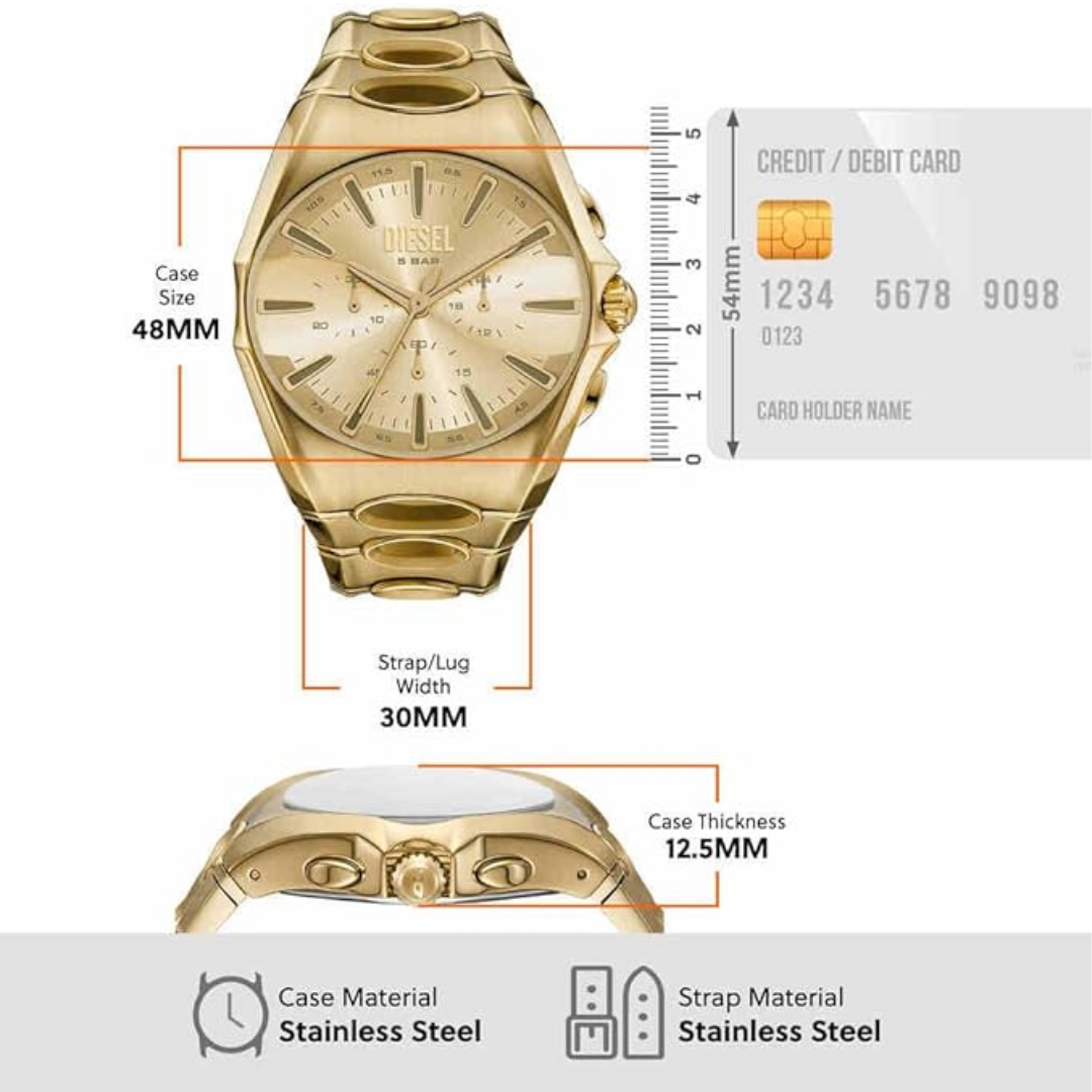 Diesel DZ4695 D-CURVE gold-tone stainless steel MEN 48MM นาฬิกาข้อมือ นาฬิกา ผู้ชาย