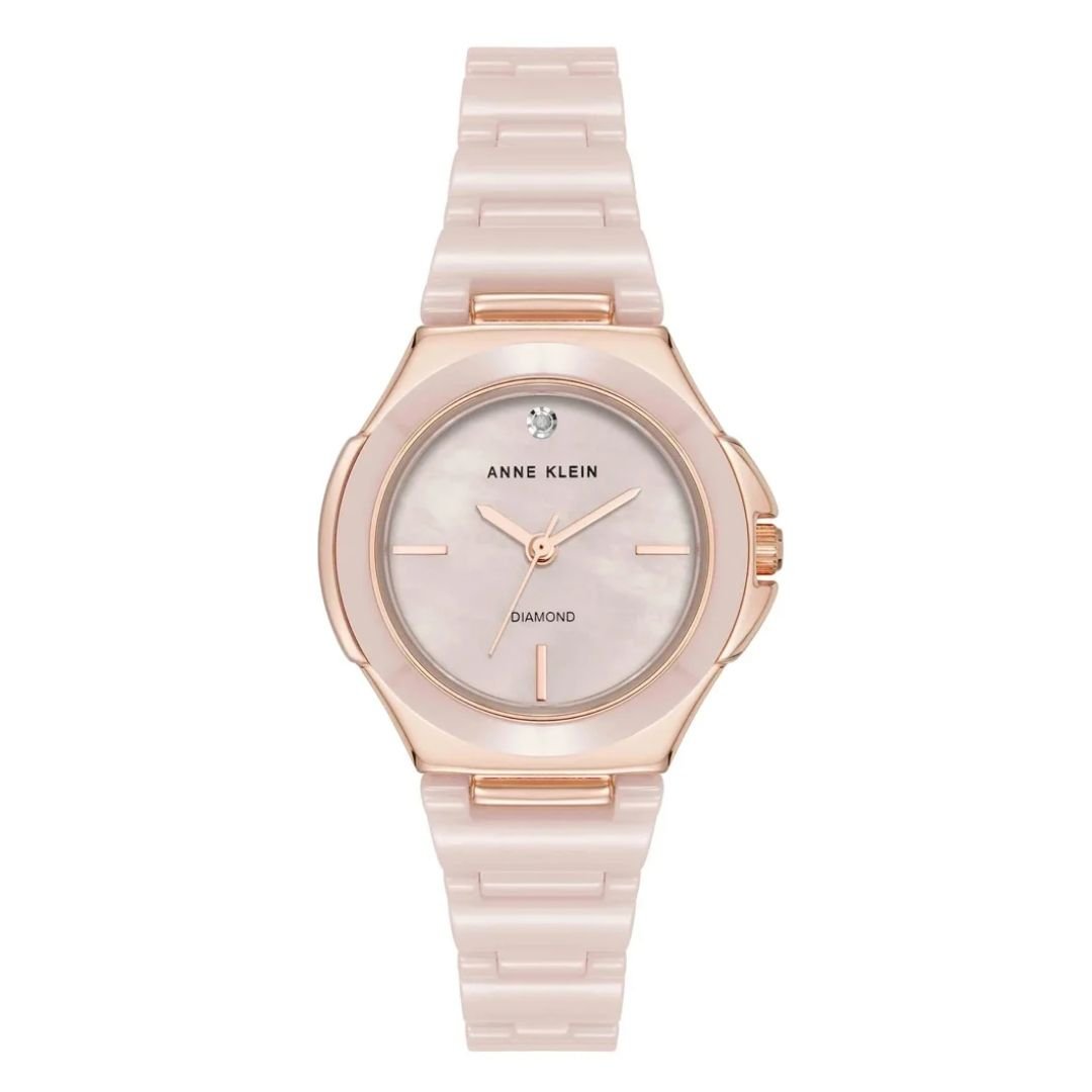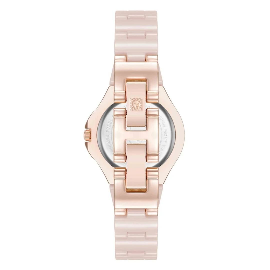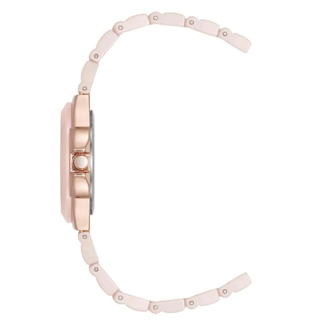 • สายนาฬิกา: สายข้อมือแบบข้อต่อ (bracelet) ผลิตจากเซรามิกสีชมพูคุณภาพดี พร้อมตัวล็อกแบบจิวเวลรี่ (Jewelry clasp)
