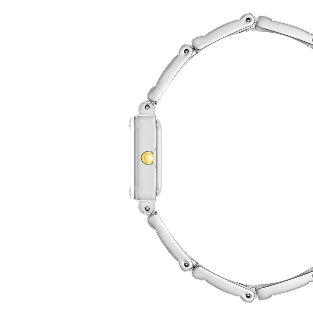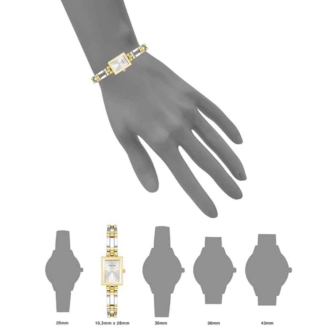 • สายนาฬิกา: สายโลหะแบบข้อต่อเปิด (open link bracelet) สไตล์ทูโทน (เงินและทอง) พร้อมตัวล็อกแบบจิวเวลรี่ (jewelry clasp) และส่วนต่อขยายสองชิ้น