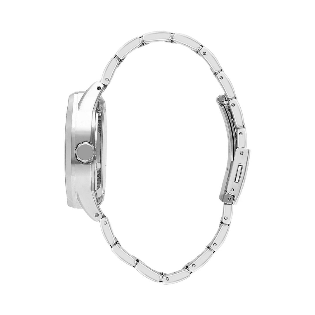 • สายนาฬิกา: สายสแตนเลสสตีล (Stainless Steel) สีเงิน ดีไซน์แบบสายเหล็กถักหรือสายข้อโลหะ (Bracelet Style) พร้อมตัวล็อกแบบบานพับหรือปุ่มกด