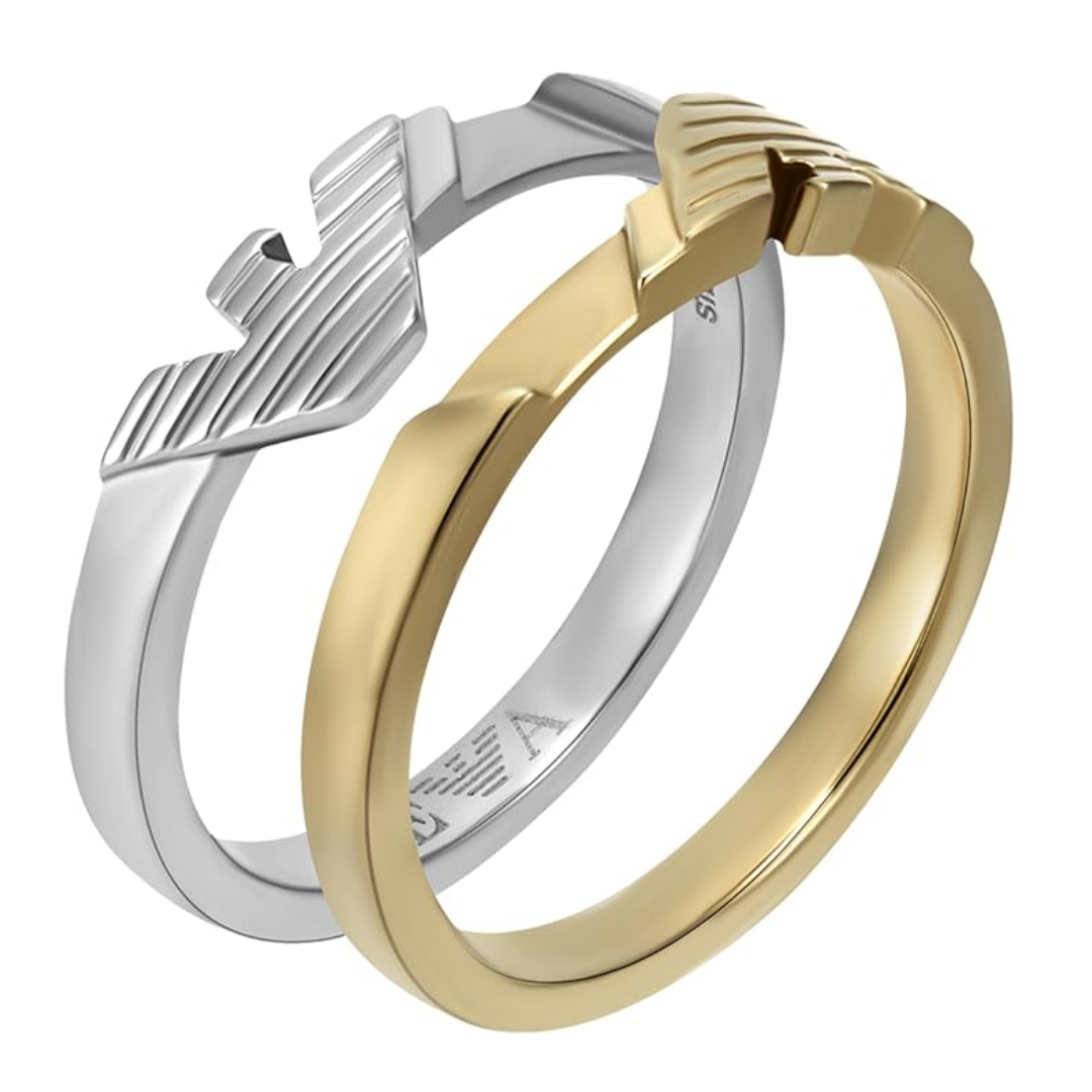 • การออกแบบ: ประกอบด้วยชั้นสแตนเลสสตีลขัดเงาสองชั้นในโทนสีที่ตัดกัน โดยชั้นด้านในจะเป็นสีทอง และชั้นด้านนอกเป็นสีเงิน มีการสลักโลโก้อินทรีอันเป็นเอกลักษณ์ของ Emporio Armani บนส่วนสีทอง