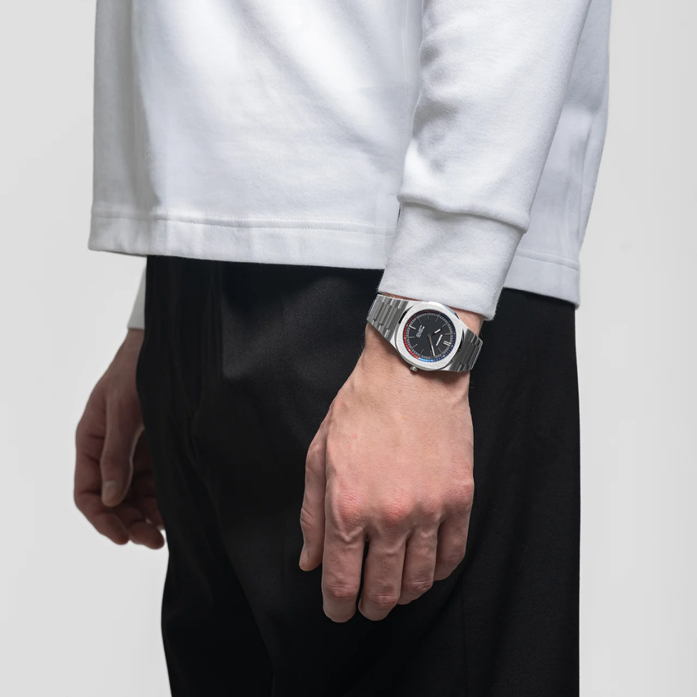 • หน้าปัด: สีดำ (Black Brass Dial) ตกแต่งด้วยขอบวงในสีน้ำเงินและแดง